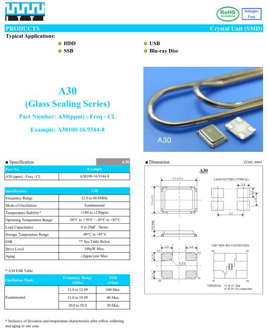 ITTI晶振,A30晶振,A30100-16.9344-8晶振