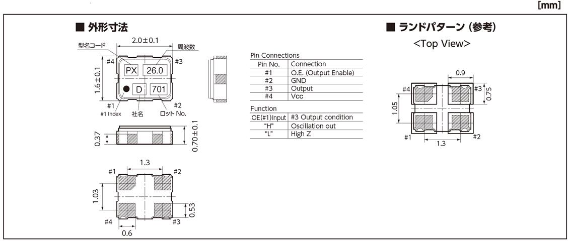消費電流 | +3.0mA max. (+3.3V, 26MHz) |