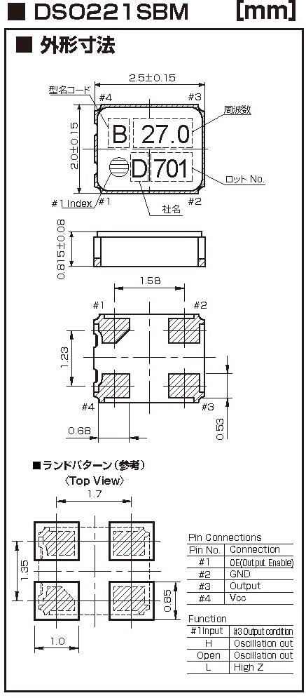 消費電流 | +8mA max.(3.25≦fo≦52MHz) |