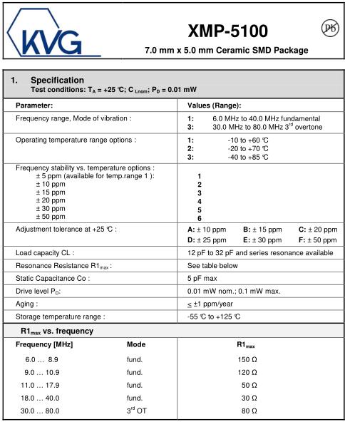KVG晶振規格 | 單位 | XMP-5100晶振頻率范圍 | 石英晶振基本條件 |