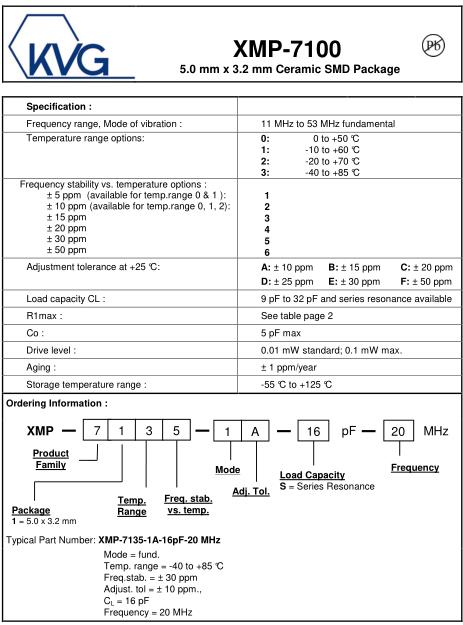 KVG晶振,XMP-7100晶振,XMP-7135-1A-16pF-20MHZ晶振