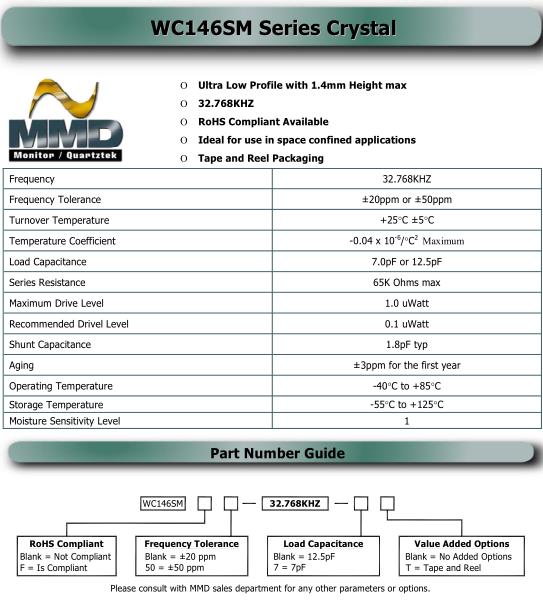 MMDCOMP晶振規(guī)格 | 單位 | WC146SM晶振頻率范圍 | 石英晶振基本條件 | |