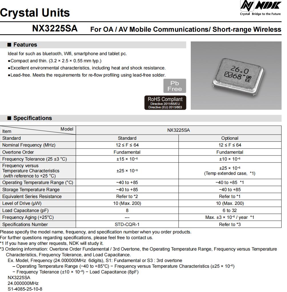 NX3225SA-26.000000MHZ-B1 | NDK晶振 | NX3225SA | 26MHz | ±10ppm |