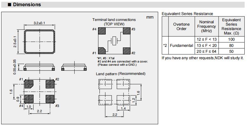 NX3225SA-16.000M-STD-CRS-2 | NDK晶振 | NX3225SA | 16MHz | ±50ppm |