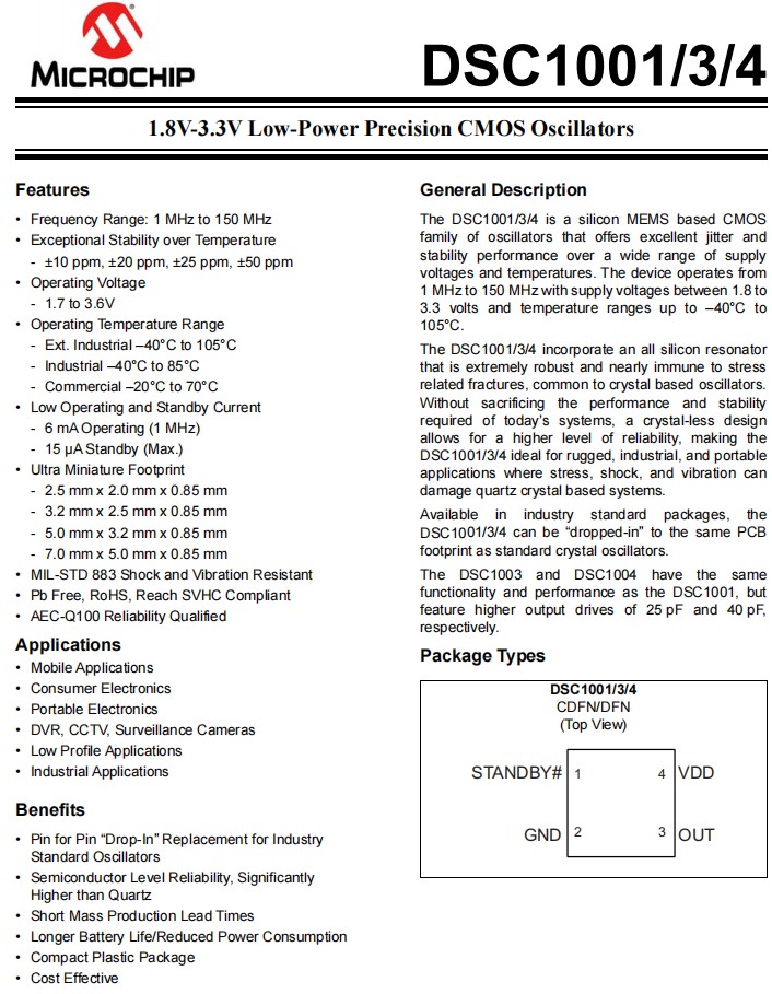 DSC1003CI5-020.0000T | Microchip晶振 | DSC1003 | 20MHz |