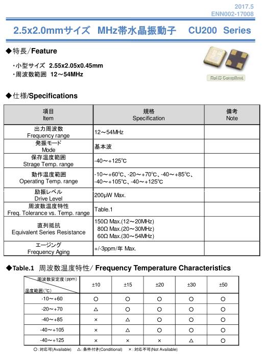 周波數溫度特性 Freq. Tolerance vs. Temp. range |