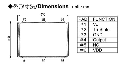 NAKA晶振,VC700晶振,7050mm有源晶振