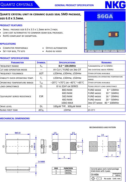 用于JEDEC J-STD-020D.01回流條件的耐熱可用性需個別判斷。請聯系我們以便獲取相關信息。NJR晶振,S6GA晶振,S6GA-24.0000F-18E2-EXT晶振.