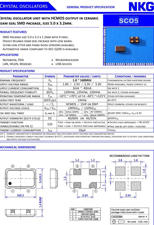 Nominal frequency | F N | 1.0 ~ 160MHz | Fundamental or 3rd overtone design |