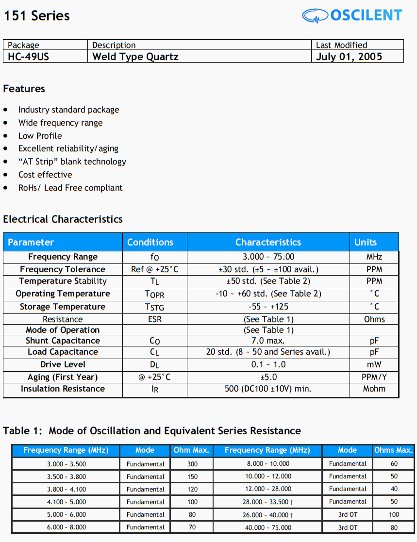 151-3.6864M-10-W-TR晶振,Oscilent美國(guó)晶振,醫(yī)療設(shè)備晶振