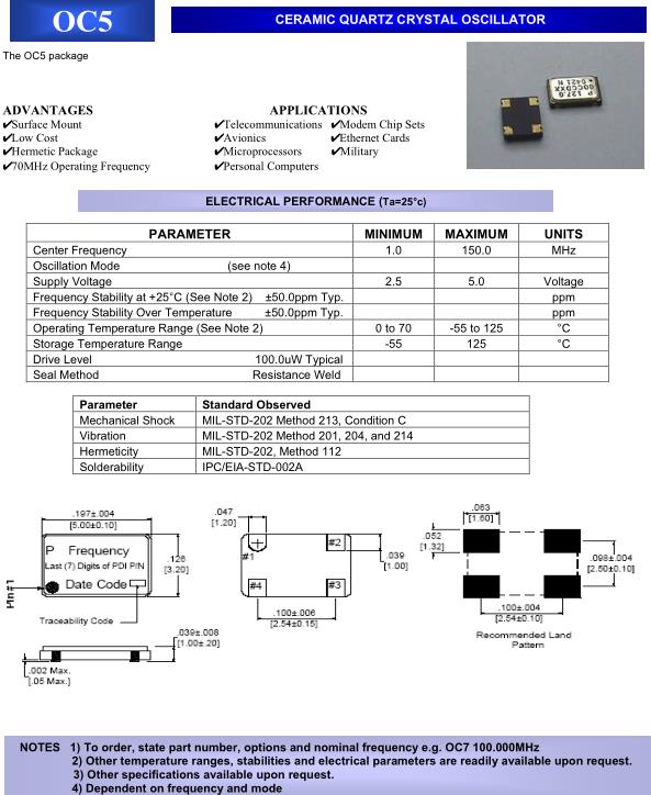 PDI晶振,OC5晶振,石英晶體振蕩器