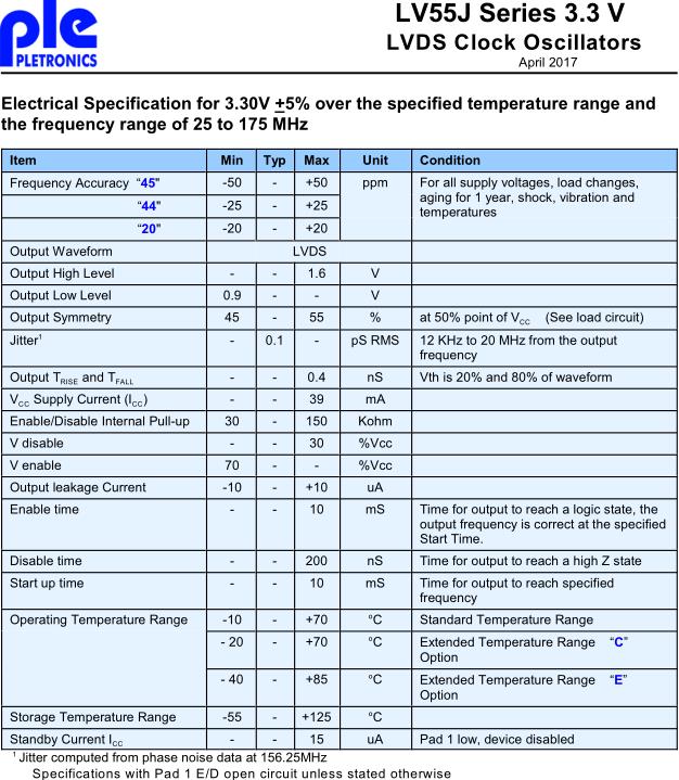 Pletronics晶振,LV55J晶振,有源晶振