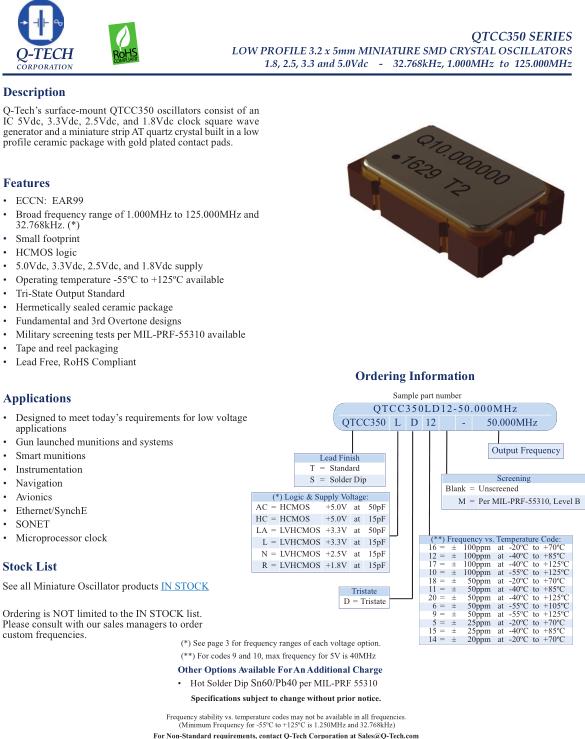 Q-Tech晶振,QTCC350AC晶振,QTCC350LD12-24.000MHz晶振