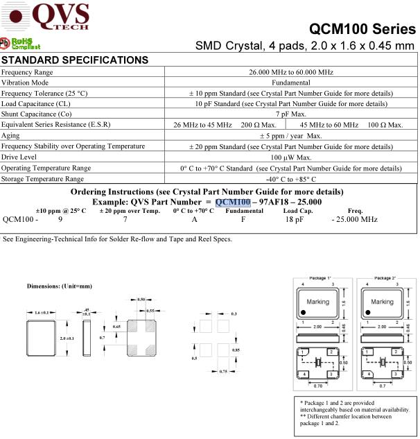 QVS晶振,QCM100晶振,QCM100-97AF18-26.000晶振