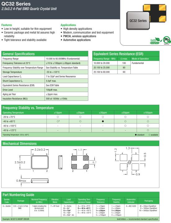 General Specifications-QANTEK晶振 | QC32晶振 |
