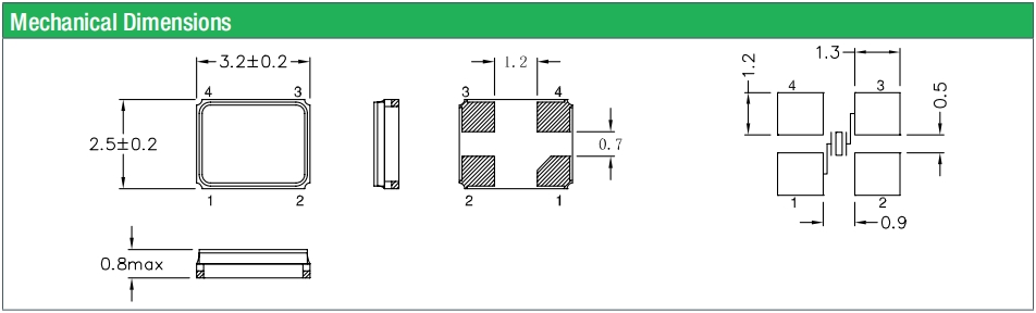 Frenquency Tolerance at 25°C | ±10 to ±100ppm (±30ppm standard) |