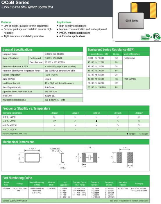 QANTEK晶振,QC5B晶振,QC5B12.0000F12B33R晶振