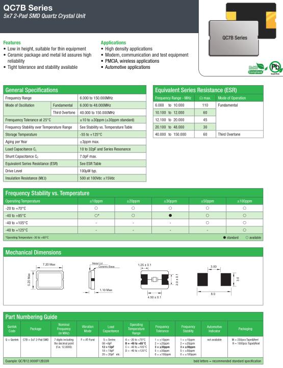 QANTEK晶振,QC7B晶振,QC7B12.0000F12B33R晶振