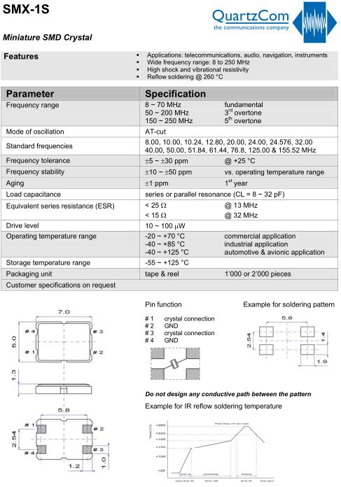 QuartzCom晶振規格 | 單位 | SMX-1S晶振頻率范圍 | 石英晶振基本條件 |