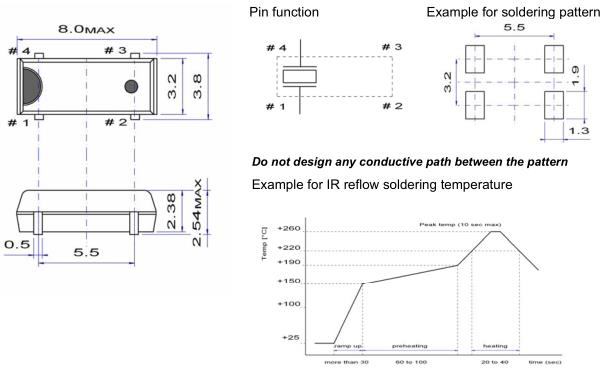 加熱包裝材料至+150°C以上會破壞產(chǎn)品特性或損害產(chǎn)品。如需在+150°C以上焊接晶體產(chǎn)品,建議使用SMD產(chǎn)品。在下列回流條件下,對晶體產(chǎn)品甚至SMD產(chǎn)品使用更高溫度,會破壞產(chǎn)品特性。建議使用下列配置情況的回流條件。安裝這些產(chǎn)品之前,應(yīng)檢查焊接溫度和時間。同時,在安裝條件更改的情況下,請再次進(jìn)行檢查。如果需要焊接的石英晶體產(chǎn)品在下列配置條件下進(jìn)行焊接,請聯(lián)系我們以獲取耐熱的相關(guān)信息。