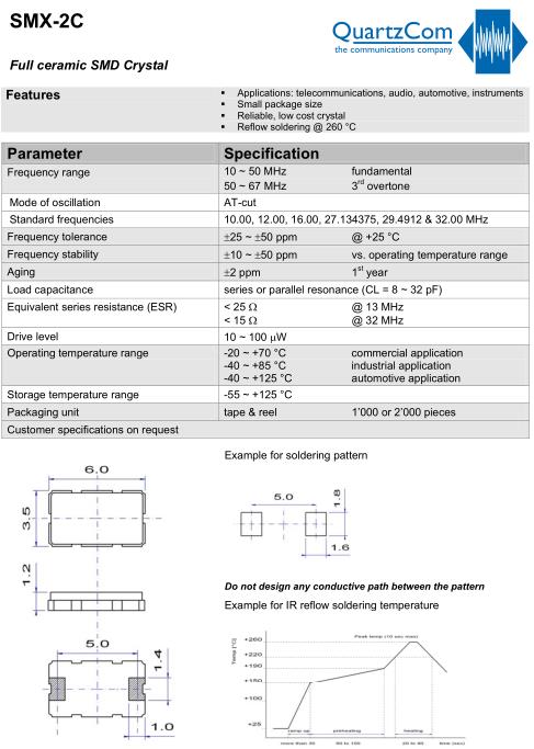 QuartzCom晶振規格 | 單位 | SMX-2C晶振頻率范圍 | 石英晶振基本條件 |