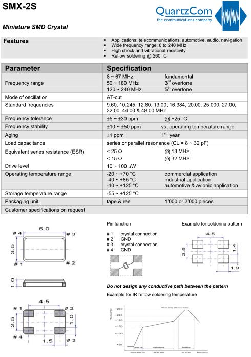 QuartzCom晶振規格 | 單位 | SMX-2S晶振頻率范圍 | 石英晶振基本條件 |