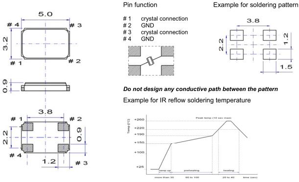 重復(fù)的溫度巨大變化可能會降低受損害的石英晶振產(chǎn)品特性,并導(dǎo)致塑料封裝里的線路擊穿.必須避免這種情況.