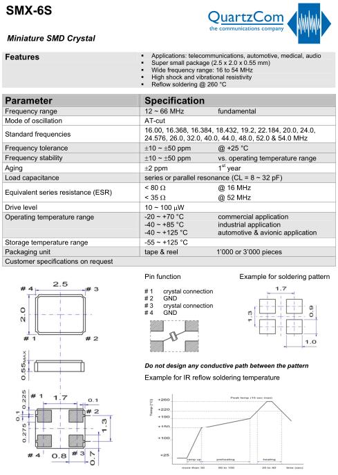 QuartzCom晶振規(guī)格 | 單位 | SMX-6S晶振頻率范圍 | 石英晶振基本條件 |