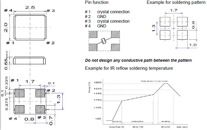 重復的溫度巨大變化可能會降低受損害的石英晶振產(chǎn)品特性,并導致塑料封裝里的線路擊穿.必須避免這種情況.