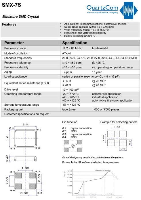 QuartzCom晶振規(guī)格 | 單位 | SMX-7S晶振頻率范圍 | 石英晶振基本條件 |