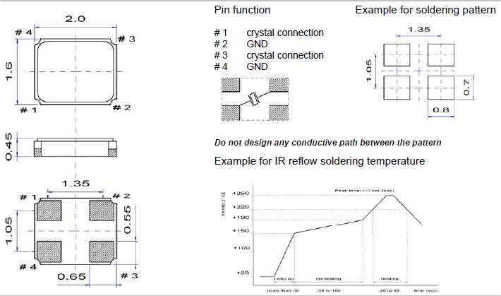 加熱包裝材料至+150°C以上會(huì)破壞產(chǎn)品特性或損害產(chǎn)品。如需在+150°C以上焊接晶體產(chǎn)品,建議使用SMD產(chǎn)品。在下列回流條件下,對(duì)晶體產(chǎn)品甚至SMD產(chǎn)品使用更高溫度,會(huì)破壞產(chǎn)品特性。建議使用下列配置情況的回流條件。安裝這些產(chǎn)品之前,應(yīng)檢查焊接溫度和時(shí)間。同時(shí),在安裝條件更改的情況下,請(qǐng)?jiān)俅芜M(jìn)行檢查。如果需要焊接的石英晶體產(chǎn)品在下列配置條件下進(jìn)行焊接,請(qǐng)聯(lián)系我們以獲取耐熱的相關(guān)信息。