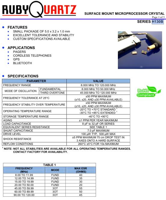 THIRD OVERTONE | 45.000 MHz TO 120.000 MHz | |