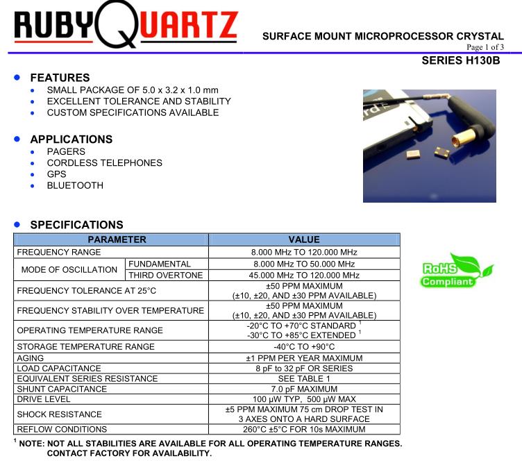 DRIVE LEVEL | 100 µW TYP, 500 µW MAX | |