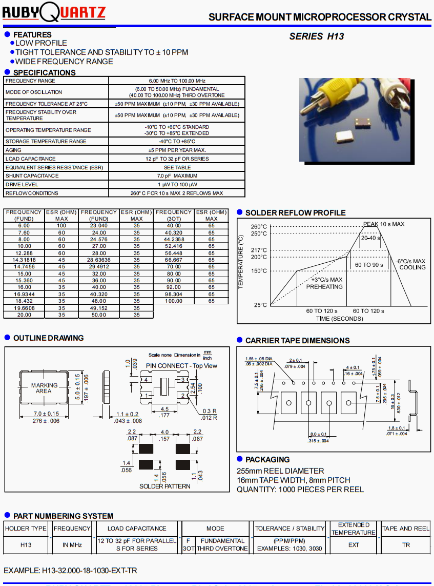 H13-16.000-12-1030-EXT-TR晶振,盧柏低損耗晶體,無線充電器晶振