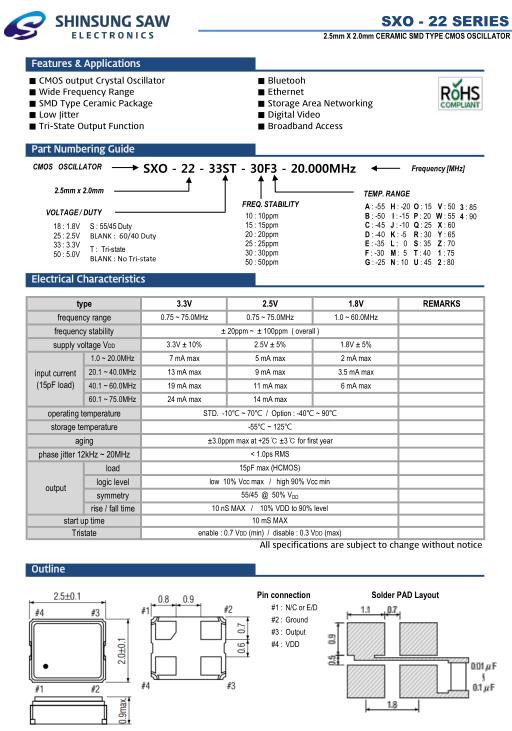 新松晶振,SXO-22晶振,SXO-22-33ST-30F3-20.000MHz晶振