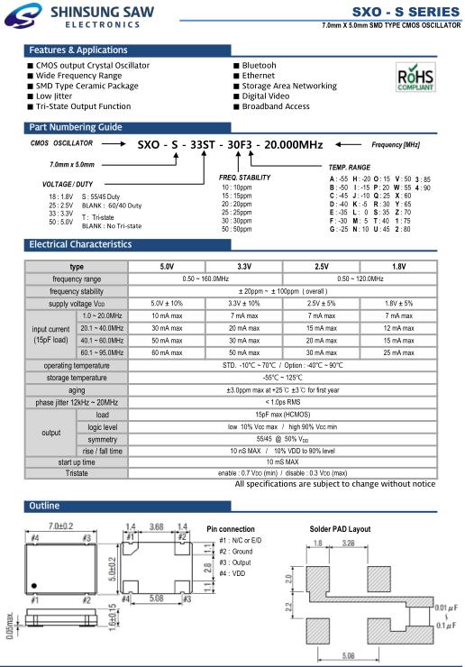 新松晶振,SXO-S晶振,SXO-S-33ST-30F3-20.000MHz晶振
