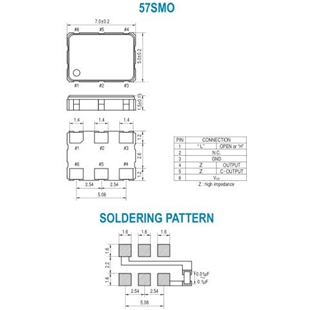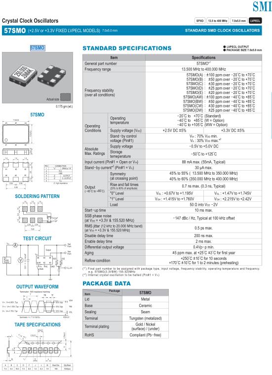 57SMO(A): ±100 ppm over -20゜C to +70゜C 57SMO(B): ±50 ppm over -20゜C to +70゜C 57SMO(C): ±30 ppm over -20゜C to +70゜C 57SMO(D): ±25 ppm over -20゜C to +70゜C 57SMO(E): ±20 ppm over -20゜C to +70゜C 57SMO(AW): ±100 ppm over -40゜C to +85゜C 57SMO(BW): ±50 ppm over -40゜C to +85゜C 57SMO(CW): ±30 ppm over -40゜C to +85゜C 57SMO(DW): ±25 ppm over -40゜C to +85゜C |