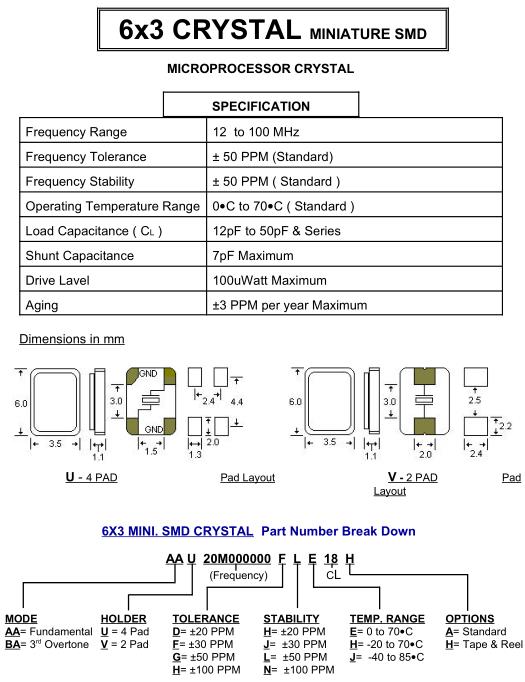 Load Capacitance ( C L ) | 12pF to 50pF & Series |