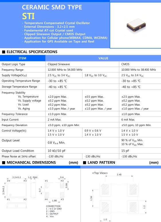 - 產品描述:Sunny晶振,STI晶振,STI3320HS516.000M晶振,具有最適合于移動通信設備用途的高穩定的頻率溫度特性.為對應低電源電壓的產品.(可對應DC+1.8V0.1Vto+3.2V0.1V)高度:最高1.0mm,體積:0.007cm3,重量:0.024g,超小型,輕型.低消...