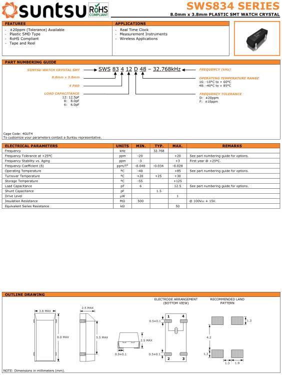Suntsu晶振規格 | 單位 | SWS834晶振頻率范圍 | 石英晶振基本條件 |