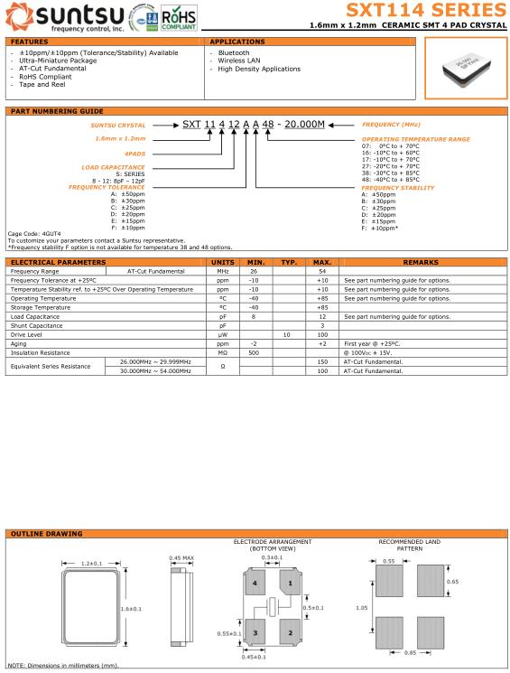 Suntsu晶振規(guī)格 | 單位 | SXT114晶振頻率范圍 | 石英晶振基本條件 | |