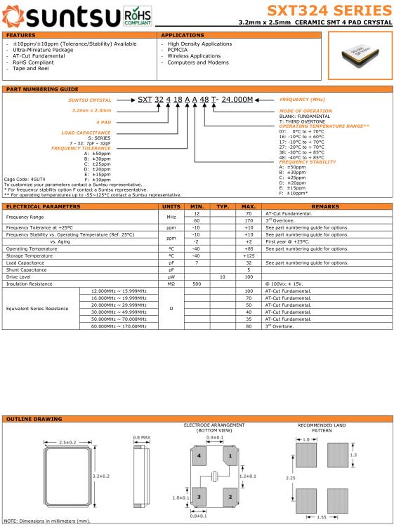 Suntsu晶振規(guī)格 | 單位 | SXT324晶振頻率范圍 | 石英晶振基本條件 | |
