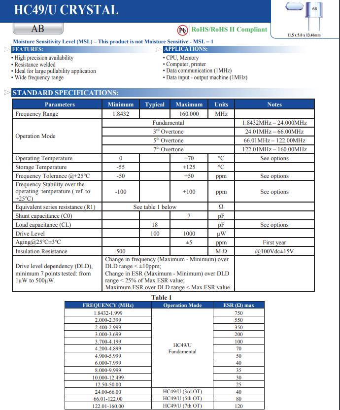 AB-18.432MAGE-T | TXC晶振 | AB | 18.432MHz | ±50ppm | ±30ppm | 12pF |