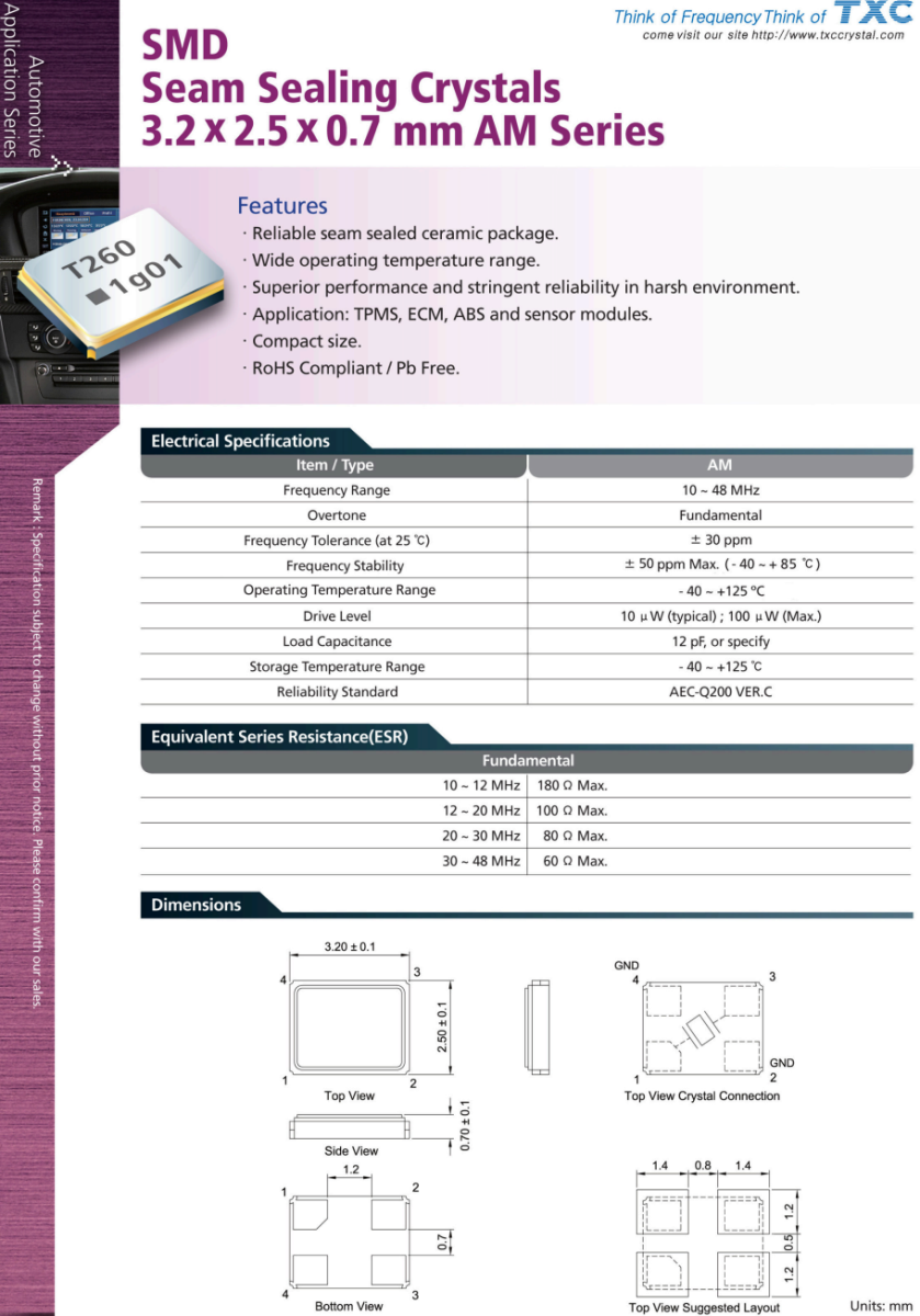 AM48070004 | TXC晶振 | AM | 48MHz | ±20ppm | ±10ppm | 4.7pF |