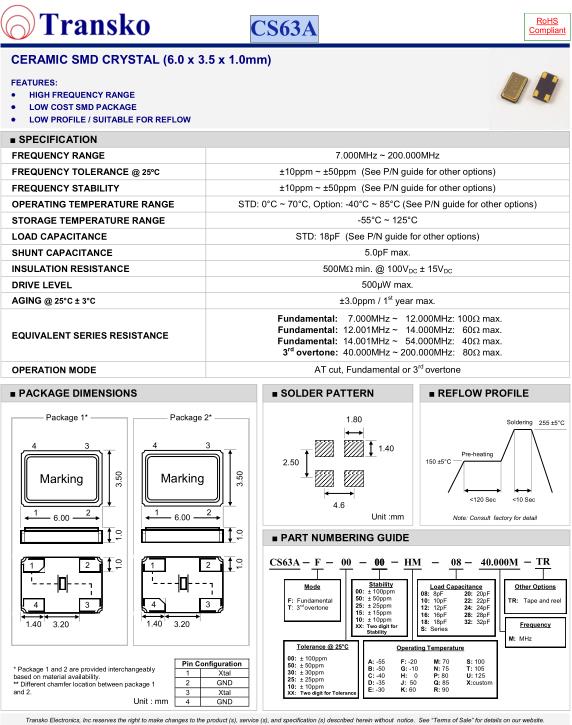 SPECIFICATION-Transko晶振 | CS63A晶振 |