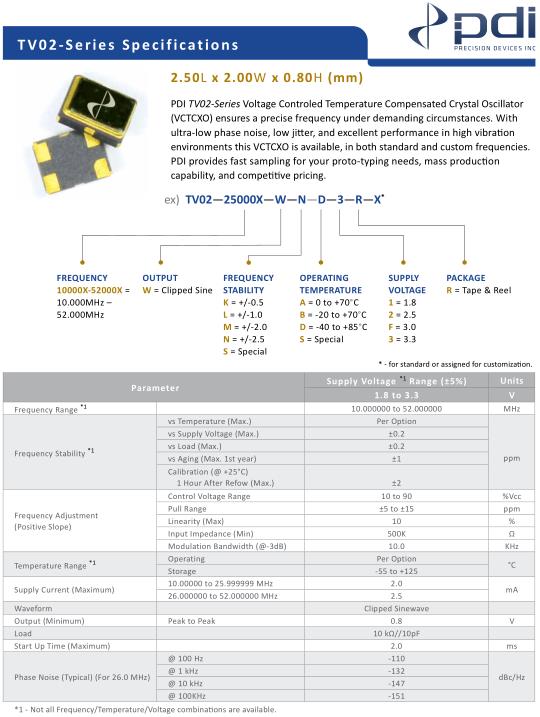 Wi2Wi晶振,TV02晶振,TV0225000XWND3RX晶振