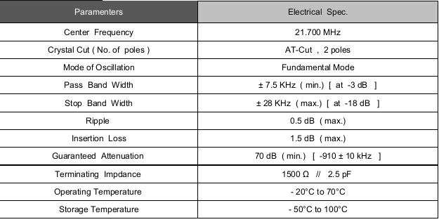 對于圓片晶振,X、Z 軸較難區(qū)分,所以石英晶振對精度要求高的對講機濾波器產(chǎn)品(如部分定單的 UM-1),會在 X 軸方向進行拉弦(切掉一小部分),以利于晶振的晶片有方向的裝架點膠,點膠點點在 Z 軸上。保證晶振產(chǎn)品的溫度特性。石英晶振產(chǎn)品電極的設計:石英晶振產(chǎn)品的電極對于石英晶體元器件來講作用是1.改變頻率;2.往外界引出電極;3.改變電阻;4.抑制雜波。第1、2、3項相對簡單,第4項的設計很關鍵,電極的形狀、尺寸、厚度以及電極的種類(如金、銀等)都會導致第4項的變化。特別是隨著晶振的晶片尺寸的縮小對于晶片電極設計的形狀及尺寸和精度上都有更高的要求---公差大小、位置的一致性等對貼片濾波器晶振產(chǎn)品的影響的程度增大,故對電極的設計提出了更精準的要求瑪居禮晶振,貼片濾波器,21.7MQ15A晶振,移動無線通訊單片晶體濾波器。