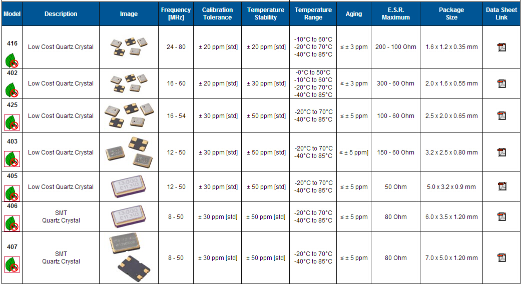 晶振規(guī)格參數(shù) | CTS晶振型號402 | |