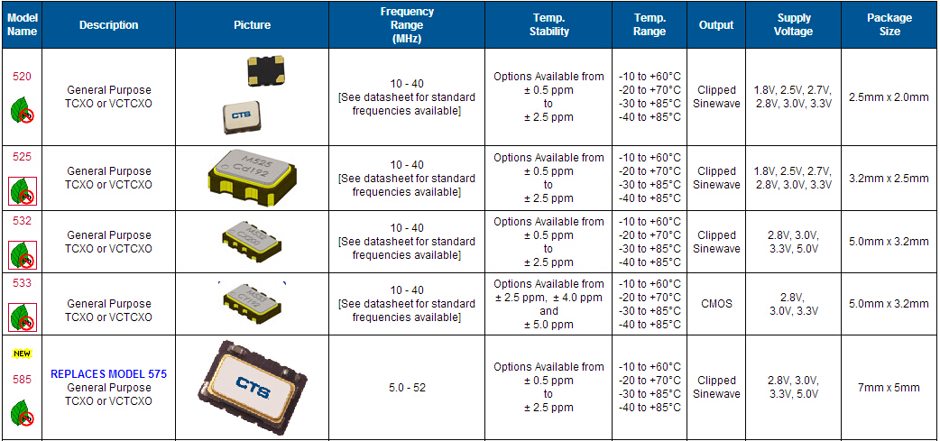 525貼片晶體,3225M溫補振蕩器,汽車專用CTS晶振