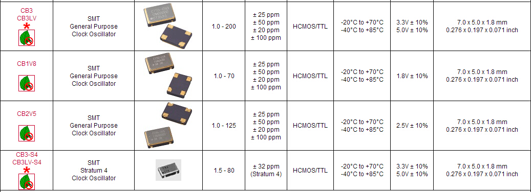 美國西迪斯晶振CB2V5,7050mm有源晶振,石英晶體振蕩器